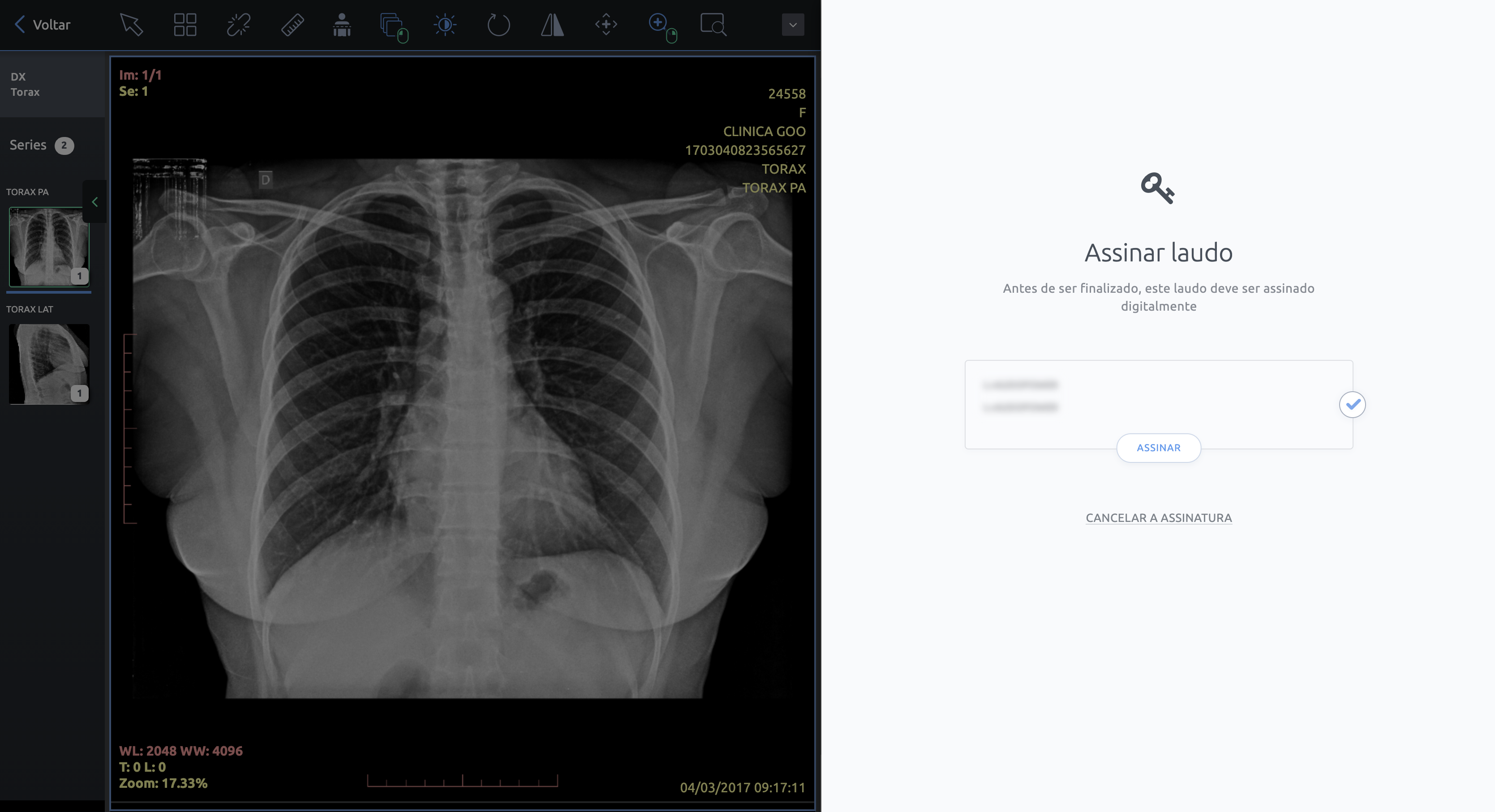 Nosso visualizador é desenvolvido por nossa equipe usando as tecnologias Web modernas. Por isso, oferecemos um Editor de laudos totalmente integrado.